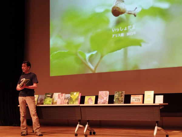 会場では、福音館書店の社員が絵本販売ブースを設けており、早速多くの参加者が列をなして、たかお氏の絵本を手に取っていた。