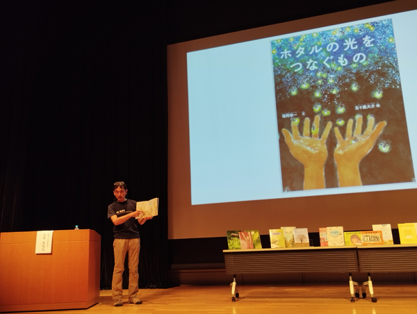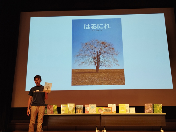 美しく素敵な北海道の自然を映した写真とともに、展開される楽しいトークに聴き入ってしまいました。絵本をプロジェクターで投影しての、小寺さんの読み聞かせも素敵でした。講演終了後のサイン会・物販には長い列ができました。