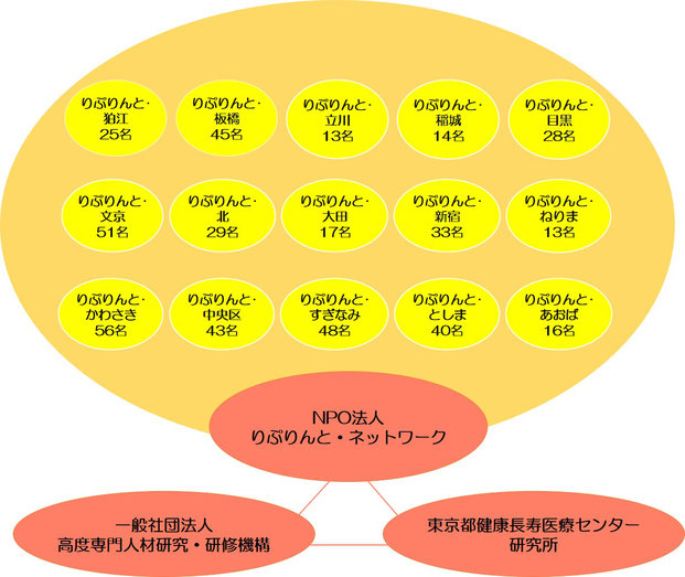 現在、東京都中央区(りぷりんと・中央区)、神奈川県川崎市多摩区(りぷりんと・かわさき)、東京都杉並区(りぷりんと・すぎなみ)、横浜市青葉区(りぷりんと・あおば)、東京都文京区(りぷりんと・文京)、東京都豊島区(りぷりんと・としま)、東京都北区(りぷりんと・北)、東京都大田区(りぷりんと・大田)、東京都新宿区(りぷりんと・新宿)、東京都練馬区(りぷりんと・練馬)、東京都狛江市(りぷりんと・狛江)、東京都板橋区(りぷりんと・板橋)、東京都立川市(りぷりんと・立川)、東京都稲城市(りぷりんと・稲城)、東京都目黒区(りぷりんと・目黒)が、りぷりんとネットワークに参加し、研修会やエリア連絡会などを行っています。
