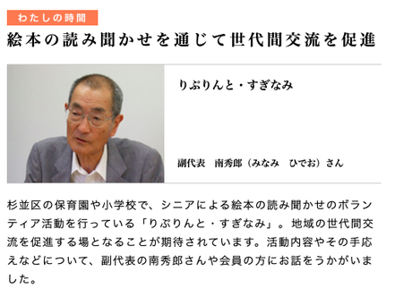 絵本の読み聞かせを通じて世代間交流として、りぷりんとの活動が掲載されました。