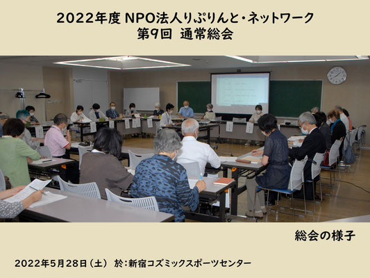 りぷりんと・ネットワークがNPOになって9回目の通常総会が5月28日(土)、新宿区の「新宿コズミックスポーツセンター」で開催され、2022年度の事業計画と予算を決定し、役員の改選を承認しました。