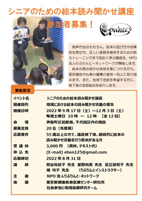 「シニアのための絵本読み聞かせ講座」開催決定!!(2022年7月29日)